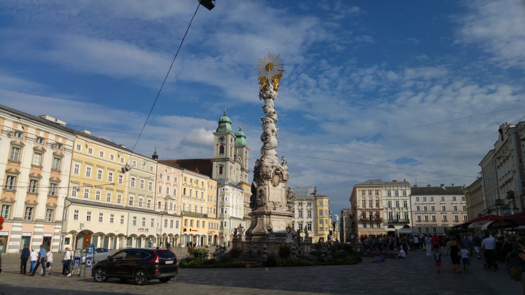 Nosotros aprovechamos la parada para cruzar en ferry al margen derecho del rio y junto al trazado de la Ev7 llegar, a las puertas de Linz, en Ottensheim, y volver al margen izquierdo. Llegamos a la elegante ciudad de Linz, lugar que pasó a la historia por ser donde Hitler, nacido cerca de aquí, proclamó la anexión de Austria al Tercer Reich.