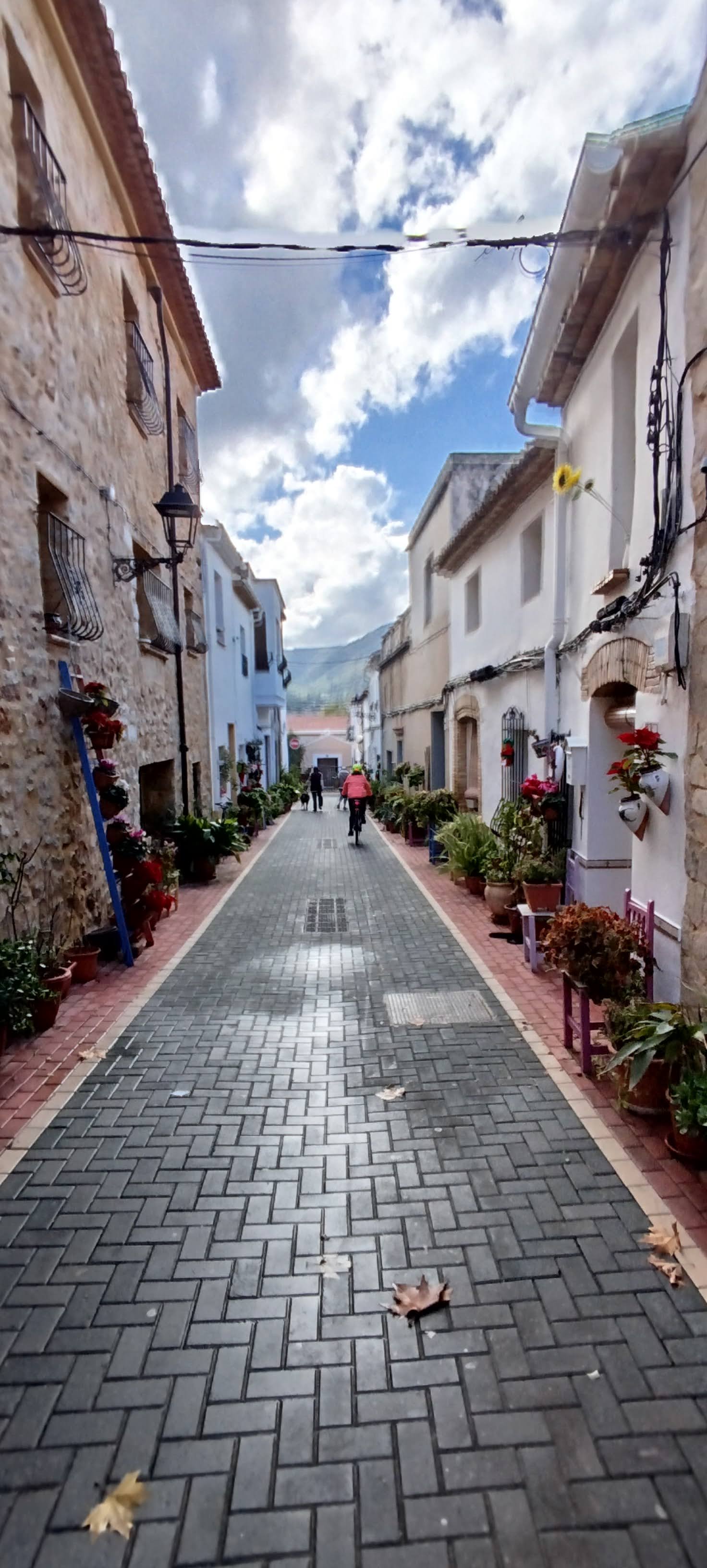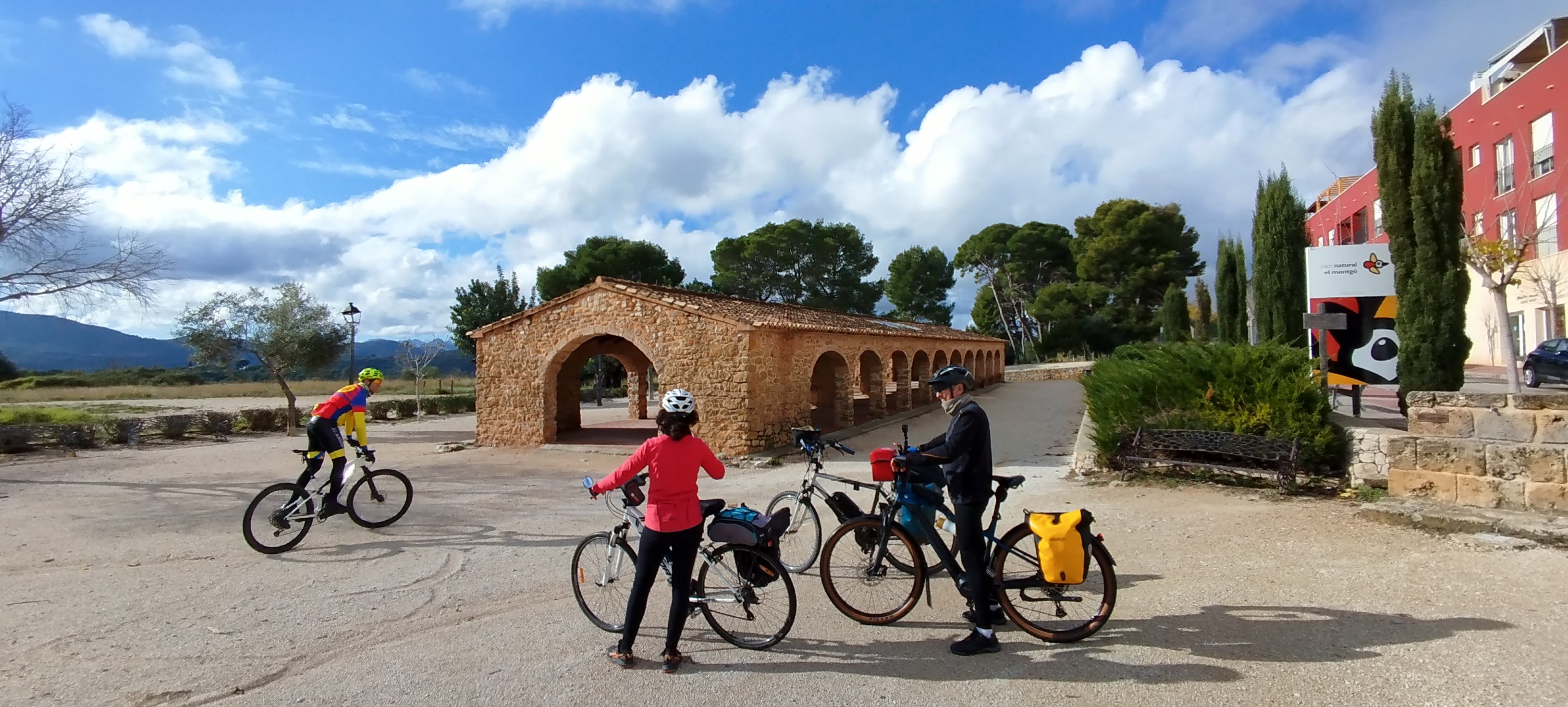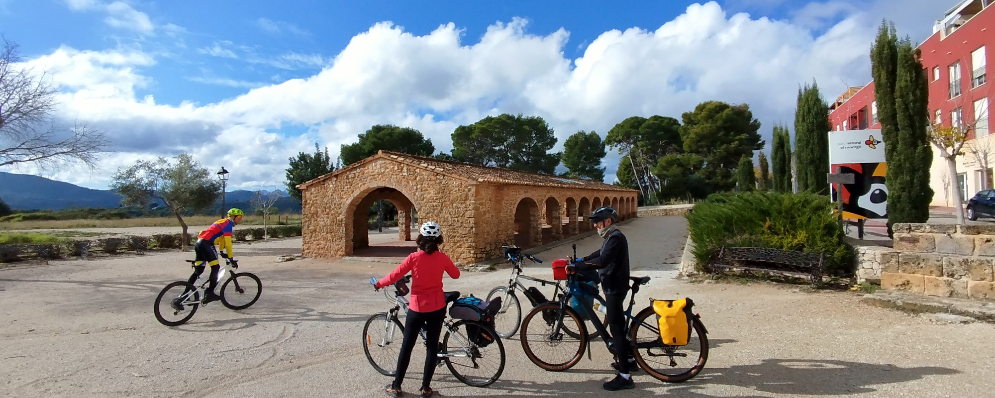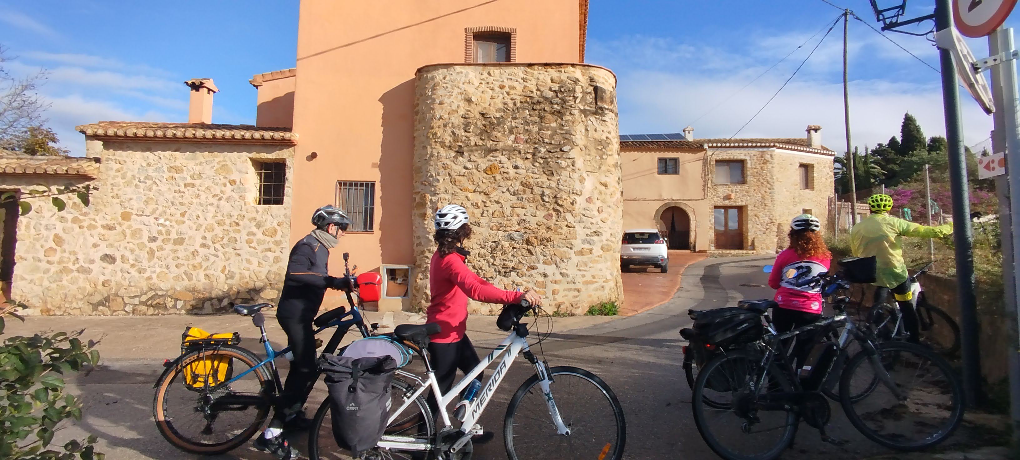 Salimos puntualmente (9:45h) buscando siempre el máximo confort para el cicloturista. Nuestra primera parada es La Xara. Allí descubrimos una zona que, aunque parece de esencia tradicional, es una urbanización de los años 90 inspirada magistralmente en la arquitectura local.