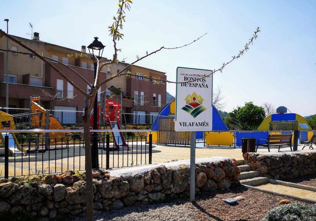 Continuamos nuestro viaje por la CV-158 (puntualmente puede tener algo de tráfico), un recorrido agradable entre campos de cultivo, olivares, almendros y viñedos, que nos acompañan hasta Vilafamés, uno de los llamados «Pueblos Bonitos de España».