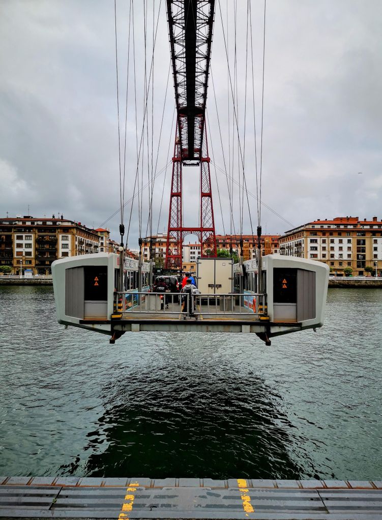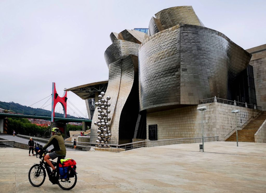 Para salir de esta industriosa y gran ciudad, nuestro trazado sigue los carriles bici (bidegorris) del margen izquierdo de la Ría del Nervión, ya que el margen derecho soporta excesivo tráfico, aunque ello significa no pasar por el famoso puente-transbordador de Portugalete, Patrimonio de la Humanidad. Recomendamos desviarnos menos de 2 kilómetros para visitarlo desde el carril bici del oeste de Portugalete.
