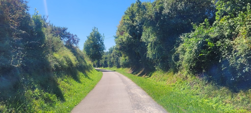 Nuestro siguiente destino es Avilés pero optamos por dar un importante rodeo para disfrutar de la vía verde de Fuso, un recorrido muy atractivo, sobre todo y especialmente, tras sufrir los interminables desniveles que desde el principio de nuestra ruta nos acompañan. Por esta vía verde alcanzamos la ribera de río Nalón, la cual podremos disfrutar hasta Trubia, punto de inicio de la famosa vía verde de la Senda del Oso, trazado antiguo minero de gran atractivo por su frondosidad y belleza.