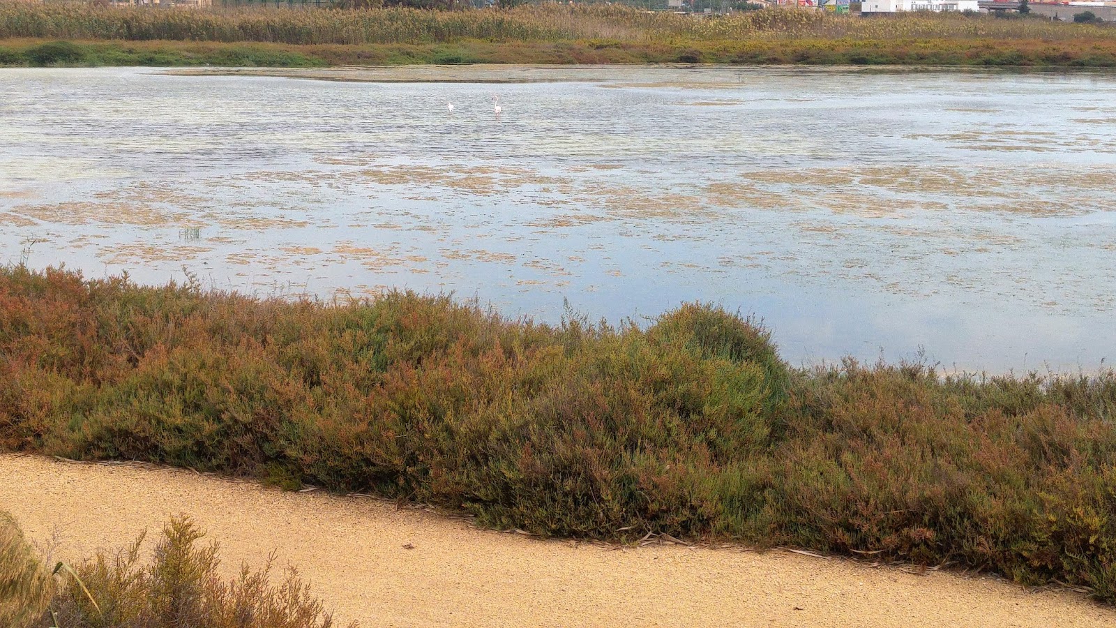 Dado que la salida está condicionada por una rotonda muy congestionada todo el año, nos vemos obligados a cruzar por el paso de cebra peatonal y tal como indica el track , circular 300 mts por un carril paralelo a la CV 865 para al fin poder empezar a disfrutar del Parque Natural de las salinas de Santa Pola, con sus 2.470 has. de superficie, su avifauna con flamencos, cigüeñelas, etc así como vegetación dunar. Dispondremos de varios puntos de avistamiento a lo largo de nuestro recorrido, el cual lo realizaremos por el oeste del parque.