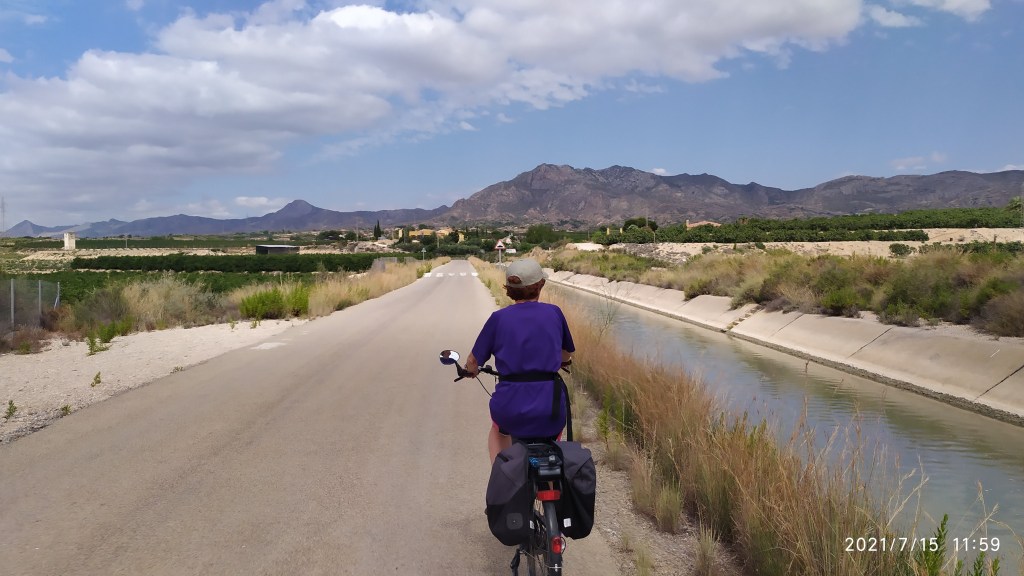 No podemos dejar de hablar del propio trasvase. El canal que recorremos forma parte de la infraestructura hidráulica más importante de España, que recoge agua del Tajo para reconducirla a la parte alta del Segura y más abajo volver a redistribuirla (mezclada con agua del propio Segura) hacia lugares de climas secos como Lorca, Cartagena, Vega Baja o Camp d’Elx. El aporte de éstos dos últimos se realiza a través del Canal de Crevillente. Con todas sus contraindicaciones medioambientales, este trasvase actualmente constituye la principal fórmula de riego (también de abastacimiento humano) para las citadas huertas.